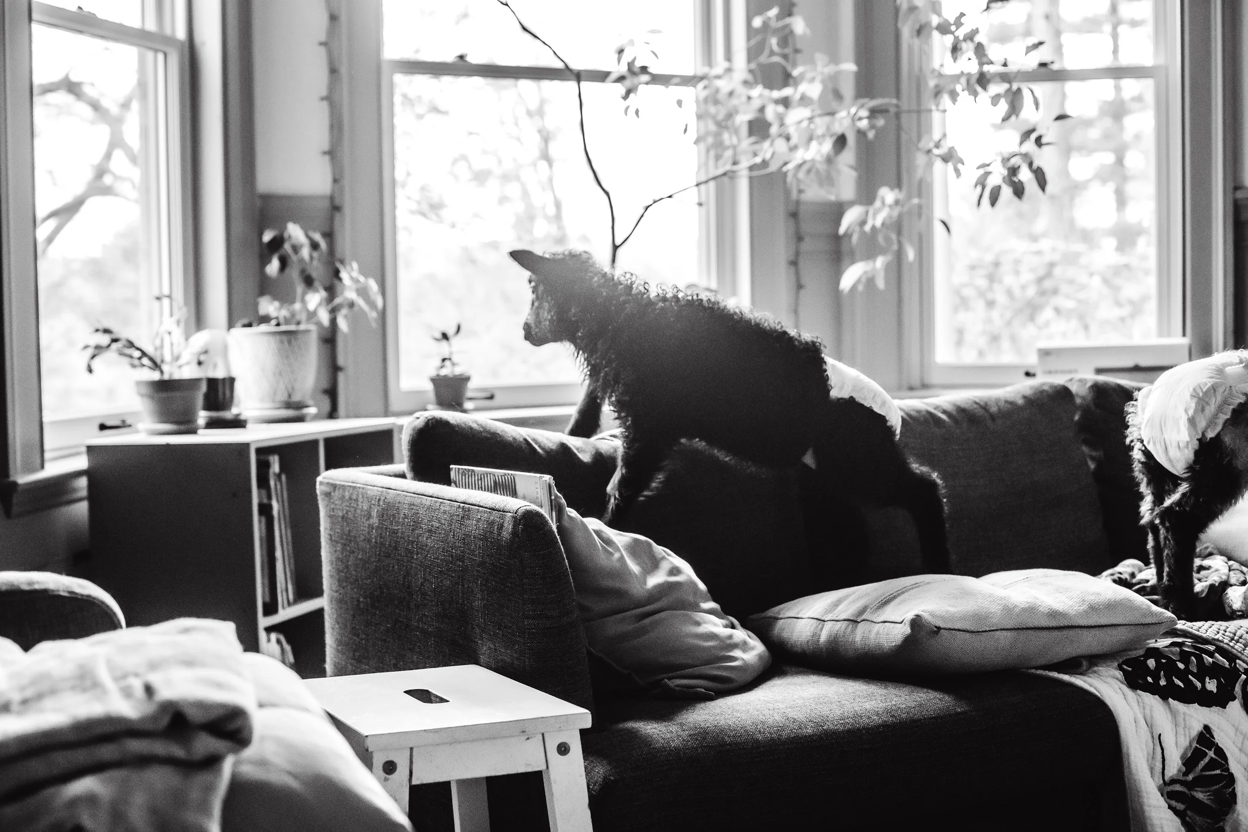 I had never loved a sheep before these two. And now they are on my couch and it’s somehow fine (but also not really), and every day I think, “today I will figure out a way for the lambs to sleep outside,” and every day I run out of hours and the sheep sleep inside, and I love them so much.