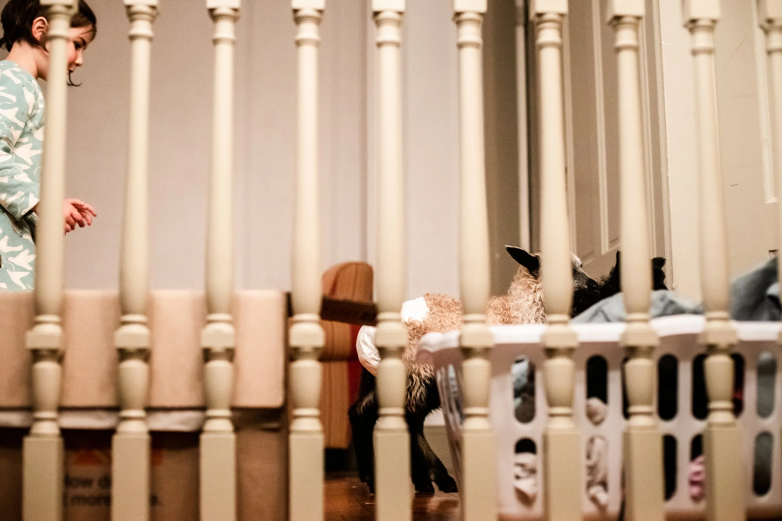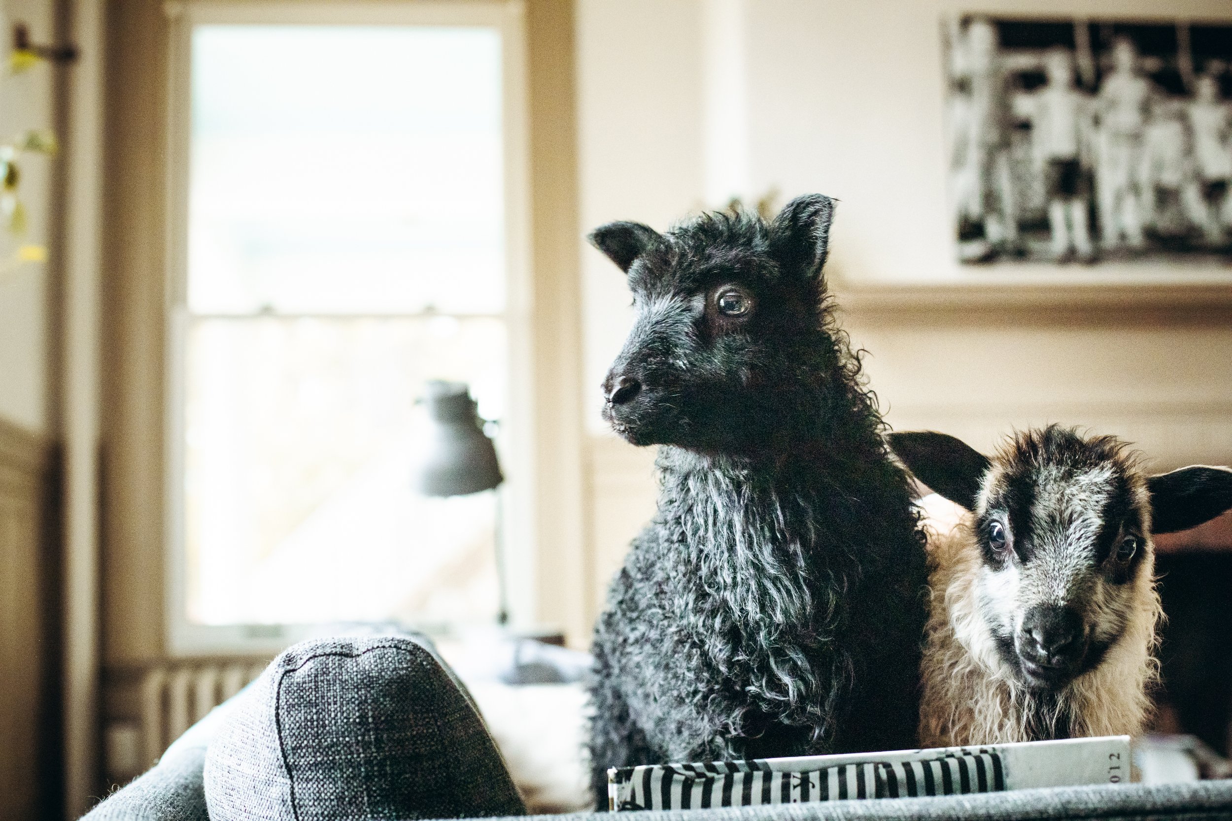 You could have been born a sheep. You could have been born a snail. These lambs are just as alive as anyone. These lambs are on the couch, and getting a shampoo in the twins’ bathroom.